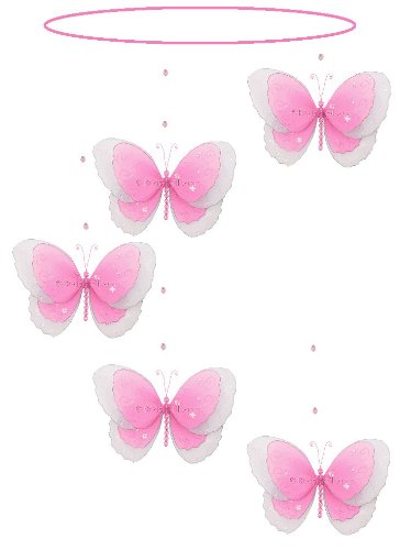 - 5 butterflies strung together into a mobile, piece of fishing line & hoop for easy hanging to any ceiling.