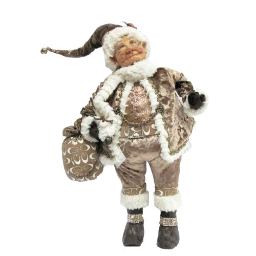 Drawing inspiration from several places in her past, renowned artist Jacqueline Kent has created an extensive line of collections. She designs and hand-sculpts the originals of all her creations, and the same care is put into every figure's life-like facial features; she designs exclusively for Kurt S. Adler, Inc. This Kurt Adler 23" Fabric Elegant Standing Elf is a beautiful, festive way to add to your holiday decor. Featuring a realistic elfin face, this figure is wearing rich shades of platinum, gold, and silver with patterned accents, complete with a pointed hat and a bag of gifts.