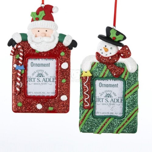 4.6"CLAYDOUGH SANTA/SNWMN PHOTO FRAME ORNAMENT SET OF 2