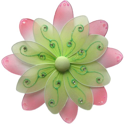 - 10" Diameter Medium Green & Pink Two-Tone Multi-Layered Daisy Flower - hanging wall ceiling decor decoration decorations