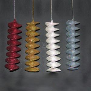 7" PLASTIC GLITTER CIRCULAR SPIRAL ORNAMENT, SET OF 4 ASSORTEDCOLORS: GOLD, RED, SILVER & WHITE