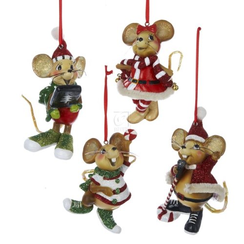 4.3"RESIN SINGING MOUSE ORNAMENT SET OF 4