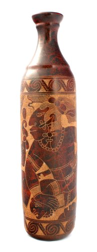 - Decorate your home or office with exotics hand-made ceramic pottery vases. Vase surface is hand etched and rustic in a Pre-Columbian design utilizing hand tools and traditional processes customary in Nicaraguan civilization. This decorative vase is a combination of brown and maroon tones, which blend into a textured beige background.