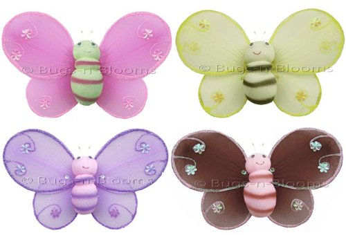 Bugs-n-Blooms specializes in nylon butterfly decorations, hanging dragonflies, ladybug decor, bumble bees and daisy flower decor for your little girls nursery or bedroom. Our butterflies are designed to coordinate with any bedding to create a stunning garden themed room using our dragonfly, ladybugs, bumble bees and daisy flower decor. Our elegant nylon accessories are perfect to hang from the ceiling and/or attach to the walls. All of Bugs-n-Blooms decorations are made with a soft bendable wire frame and nylon fabric; which are nicely accented with sequins, glitter, and/or beads. Our stunning bee decorations can also add a special touch to a bumble nursery, girls butterfly birthday party, baby shower, or a corporate event. Our bee decorations come in a variety of styles, colors and sizes. Our decorative designs are perfect for any room in the house; making a home cheerful & colorful. See detailed product information above. For tips, visit our 'How To Hang' page in our Amazon store.