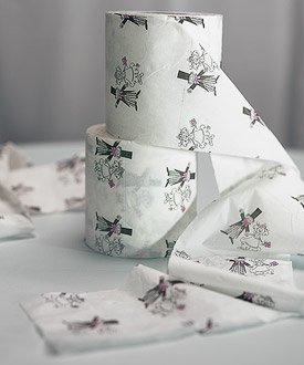 Light-Hearted Wedding Toilet Paper RollThis comical couple is sure to bring a smile. Here is an easy way to add some fun at engagement celebrations, showers, rehearsal parties, gift openings or even the Big Event! Your guests will be amused and amazed with your attention to every detail when they discover...even the toilet paper has a wedding theme! Size: each roll apprx 28.2 yards
