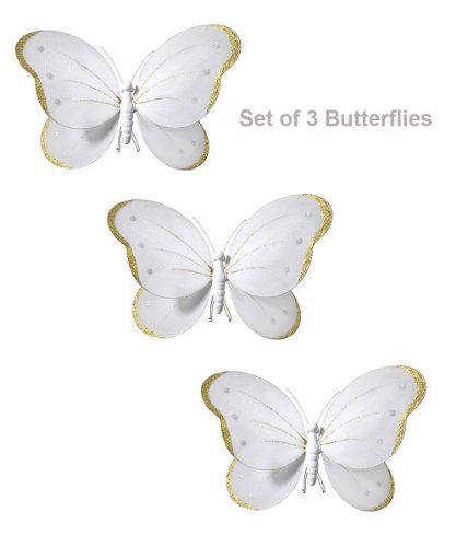 - Set of 3: 14" W x 8" H Large White Hanging Butterfly: Made with a soft wire frame for nursery, bedroom, party hanging decoration;