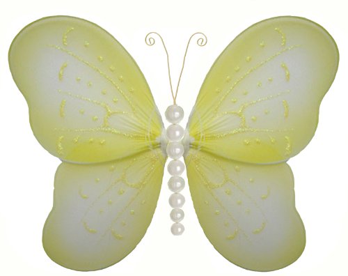 The Detailed Description of 10" Yellow Pearl Butterfly Decorations - nylon hanging decor ceiling wall baby nursery girls bedroom room wedding decoration birthday party showerFeatures