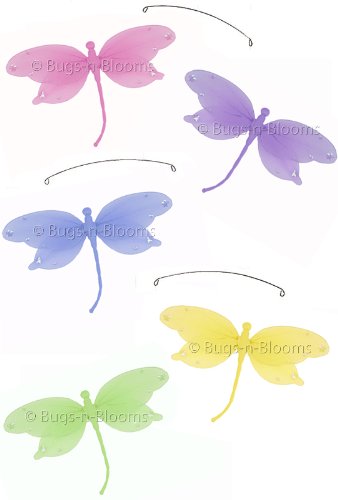 Bugs-n-Blooms specializes in nylon butterfly decorations, hanging dragonflies, ladybug decor, bumble bees and daisy flower decor for your little girls nursery or bedroom. Our dragonflies are designed to coordinate with any bedding to create a stunning garden themed room using our dragonfly, ladybugs, bumble bees and daisy flower decor. Our elegant nylon accessories are perfect to hang from the ceiling and/or attach to the walls. All of Bugs-n-Blooms decorations are made with a soft bendable wire frame and nylon fabric; which are nicely accented with sequins, glitter, and/or beads. Our stunning dragonfly decorations can also add a special touch to a dragonfly wedding, girls butterfly birthday party, baby shower, or a corporate event. Our dragonfly decorations come in a variety of styles, colors and sizes. Our decorative designs are perfect for any room in the house; making a home cheerful & colorful. See detailed product information above. For tips, visit our 'How To Hang' page in our Amazon store.