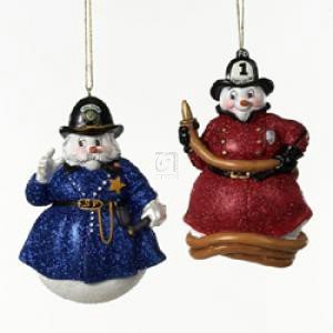 The Detailed Description of RESIN BUSKER POLICEMAN & FIREMAN SNOWMAN ORNAMENTS, SET OF 2 ASSORTED - Christmas Ornament