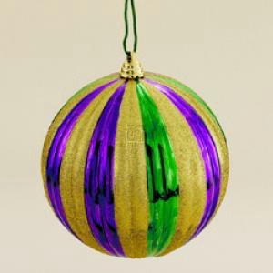 The Detailed Description of 200MM PLASTIC SHATTERPROOF RIBBED BALL IN MARDI GRAS - Christmas OrnamentFeatures