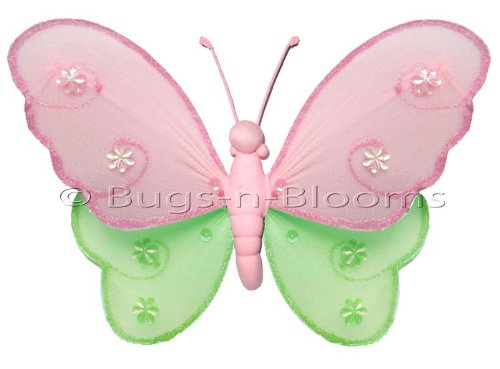 The Detailed Description of 5" Small Green Pink Hailey Butterfly Decorations - hanging butterfly nylon butterflies girls room baby nursery bedroom wall ceiling decor bridal baby shower birthday party wedding favor craft decorationFeatures