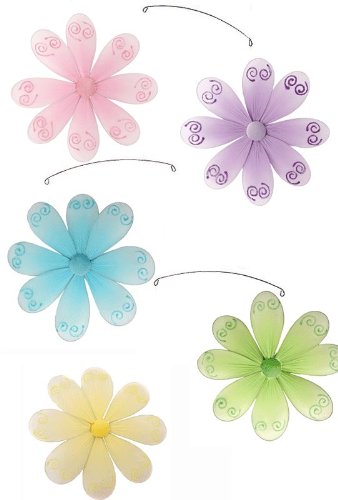 The Detailed Description of Pink Purple Yellow Blue Green Swirl Flower Mobile Decorations - mobiles hanging daisy flowers nylon dragonflies girls room baby nursery bedroom wall ceiling decor bridal baby shower birthday party wedding daisies favor craft decorationFeatures