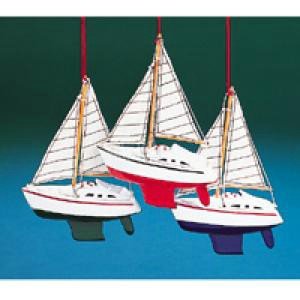 WOODEN YACHT WITH SAILS ORNAMENT