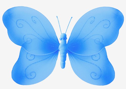 The Detailed Description of 10" Medium Blue Swirl Butterfly Decorations - butterflies hanging nylon nursery bedroom girls room ceiling wall decor, wedding birthday party baby bridal showerFeatures